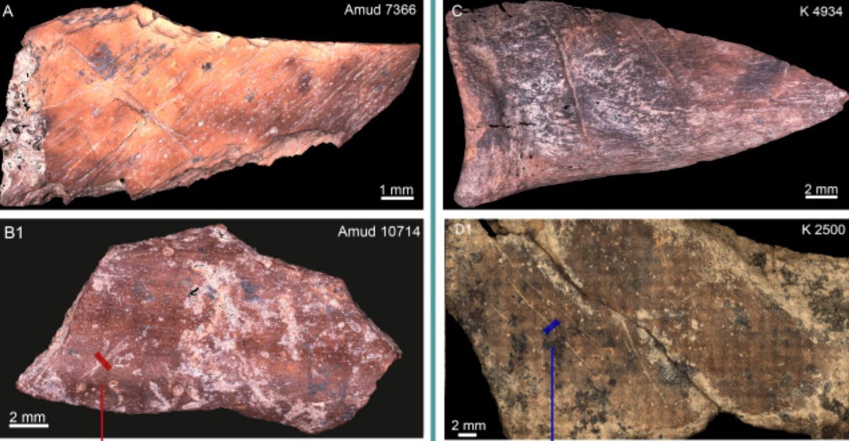 В пещере Кебара на костях встречались редкие, ровные порезы, типичные для разделки свежей туши. В пещере Амуд порезы были многочисленными, пересекающимися и часто извилистыми; такие следы возникают при обработке вяленого, вареного или подгнившего мяса.