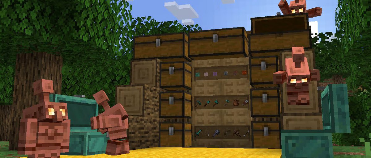 - Медный голем собирает предметы, находящиеся в медных сундуках, и раскладывает их в сундуки вокруг базы игрока.