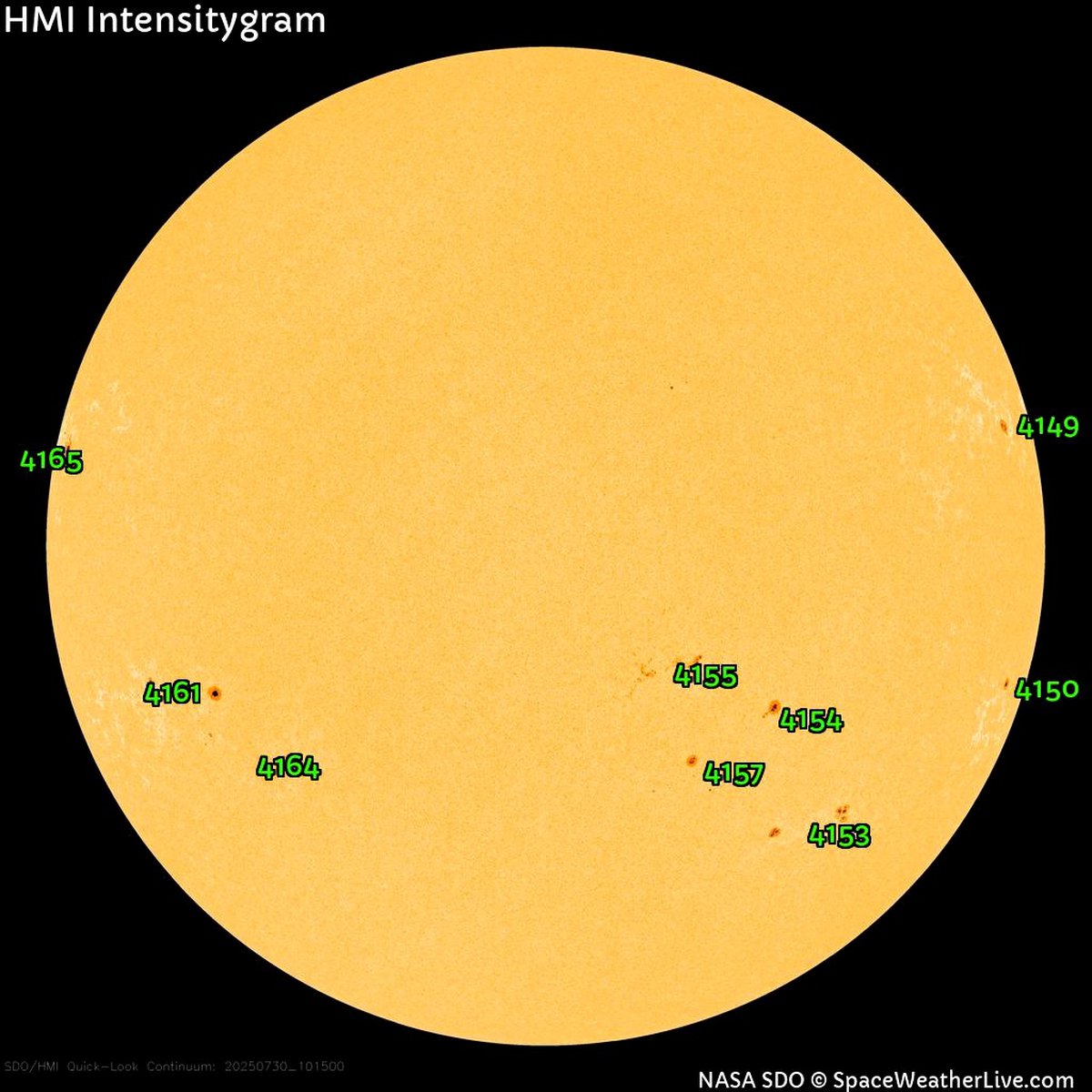 Тем временем на Солнце несколько пятен на Солнце формируют магнитные пары средней сложности. Вероятность вспышек предмаксимального класса M пока составляет около 30 %, шанс вспышки максимального класса X оценивается примерно в 5 %.