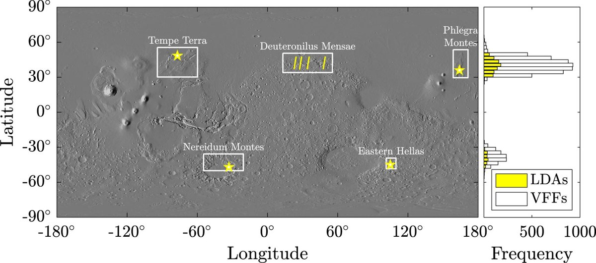 Ученые изучили данные о пяти участках в разных районах Марса. Участки были расположены в обоих полушариях планеты, во всех случаях содержание льда в ледниках оказалось выше 80%.