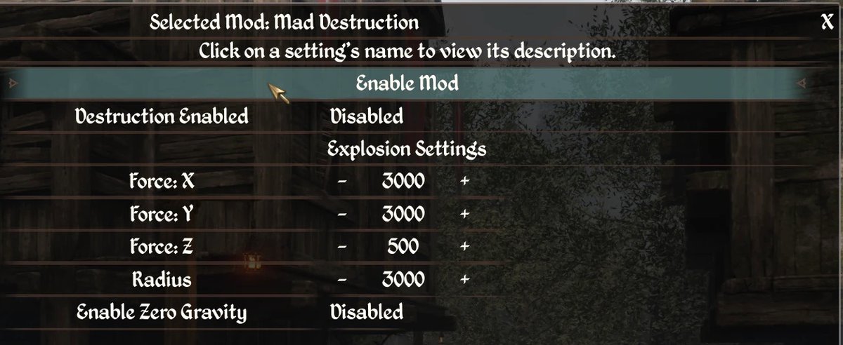 Загрузить модификацию можно здесь, для работы мода потребуется UE4SS for OblivionRemastered. По умолчанию она отключена даже после установки, для активации можно ввести в консоли ToggleMadDestruction или активировать мод через меню.