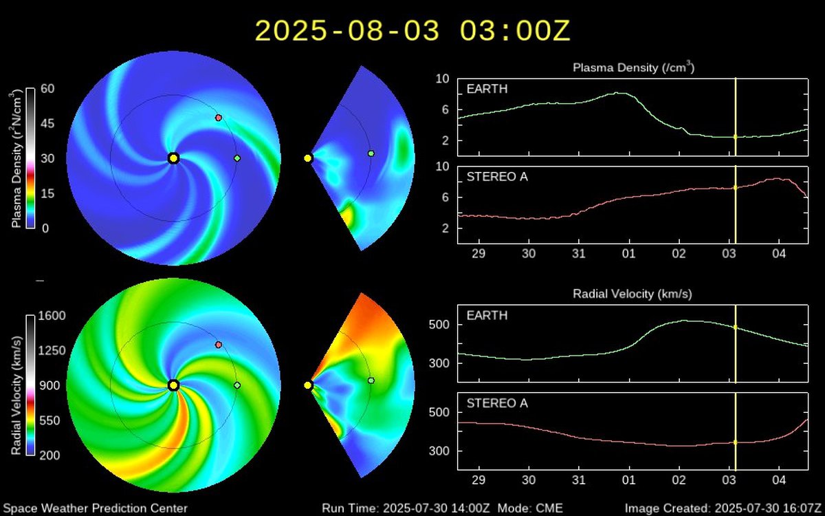 Уже 4 августа возможны изменения: по оценке Met Office, Земля может попасть под влияние высокоскоростного потока из новой корональной дыры. NOAA также прогнозирует небольшое усиление геомагнитной активности.