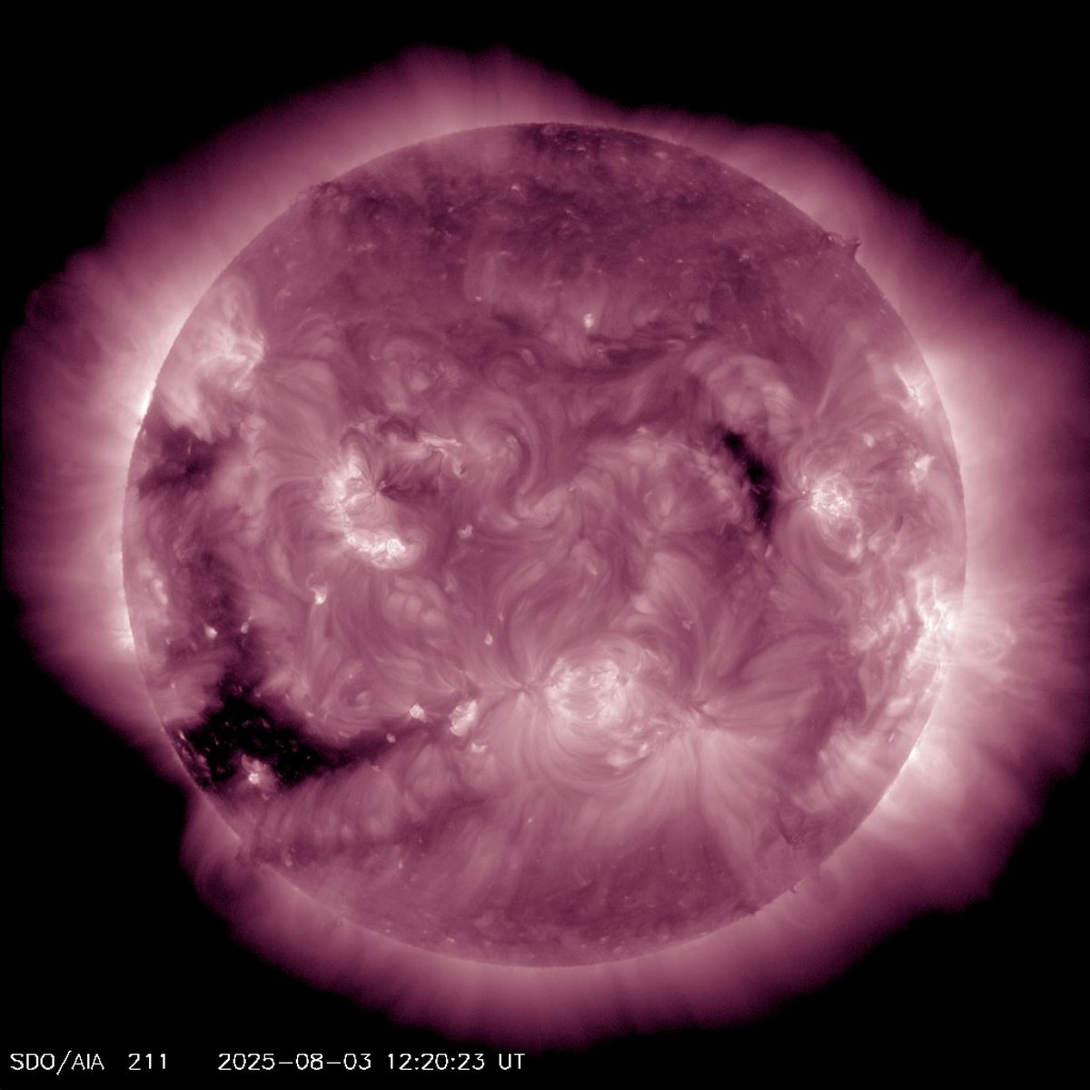 По предварительным данным, 5 августа геомагнитная обстановка будет стабильнее. Но корональная дыра никуда не денется: она будет «поливать» Землю потоком частиц еще несколько дней.