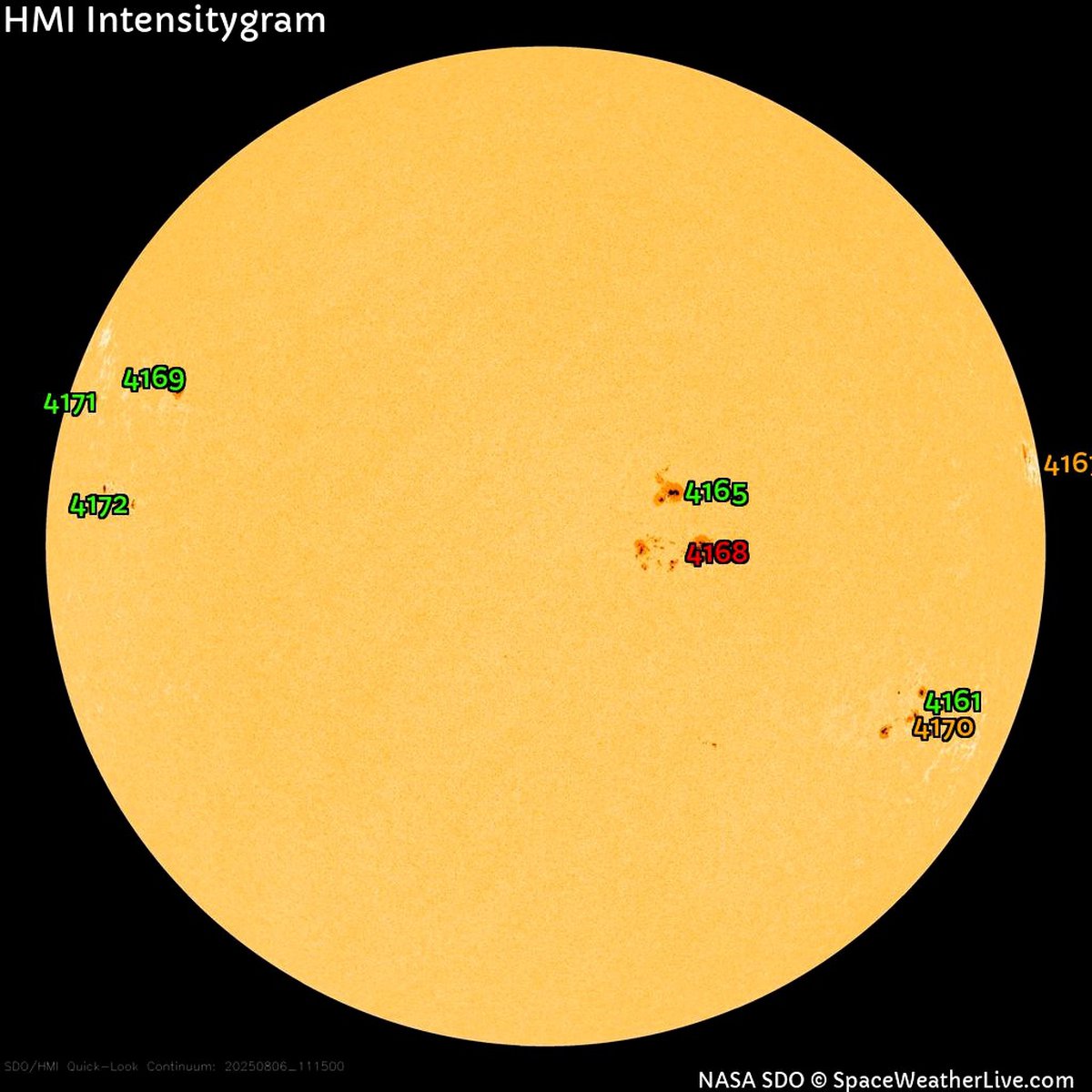 Источником большинства сильных вспышек стало пятно AR4168, обладающее нестабильным магнитным полем. Пятно все еще активно и по-прежнему находится в центральной части видимого солнечного диска.