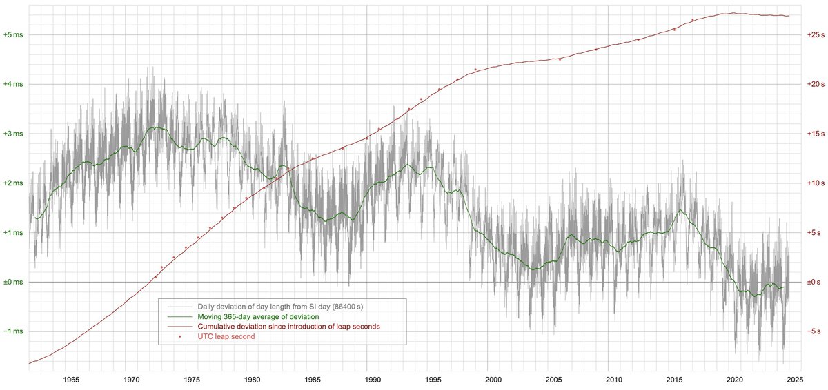 Суточные колебания продолжительности дня измеряются с конца 1960-х годов при помощи атомных часов и данных радиоастрономии. Ключевую роль здесь играют квазары, сверхяркие активные ядра галактик: ориентируясь на них, угловое вращение Земли измеряют с точностью до микросекунд.