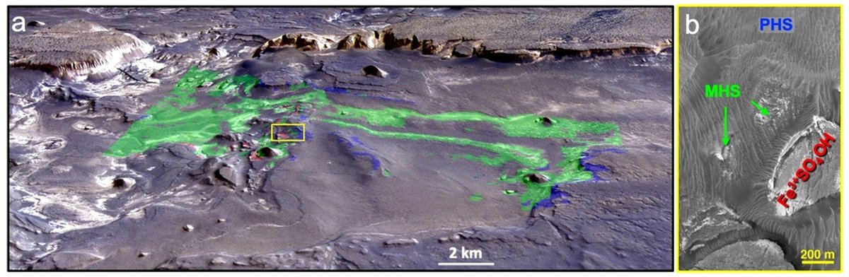 Потенциально уникальный минерал был найден в районе долины Маринер. Это самый большой в Солнечной системе каньон, его протяженность превышает 4 тысячи километров. Ученые считают, что миллиарды лет назад по долине Маринер текли потоки воды, район считается перспективным для поиска ее следов.