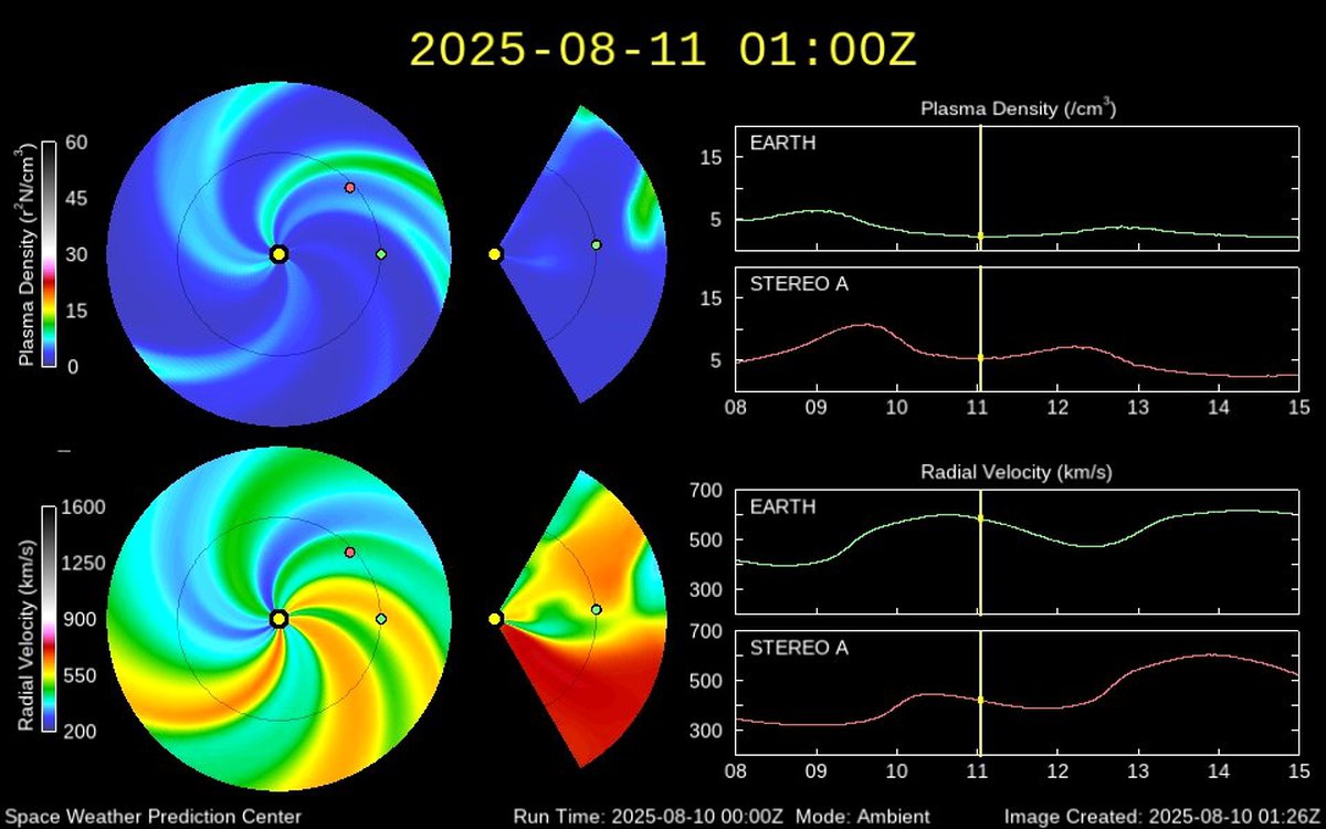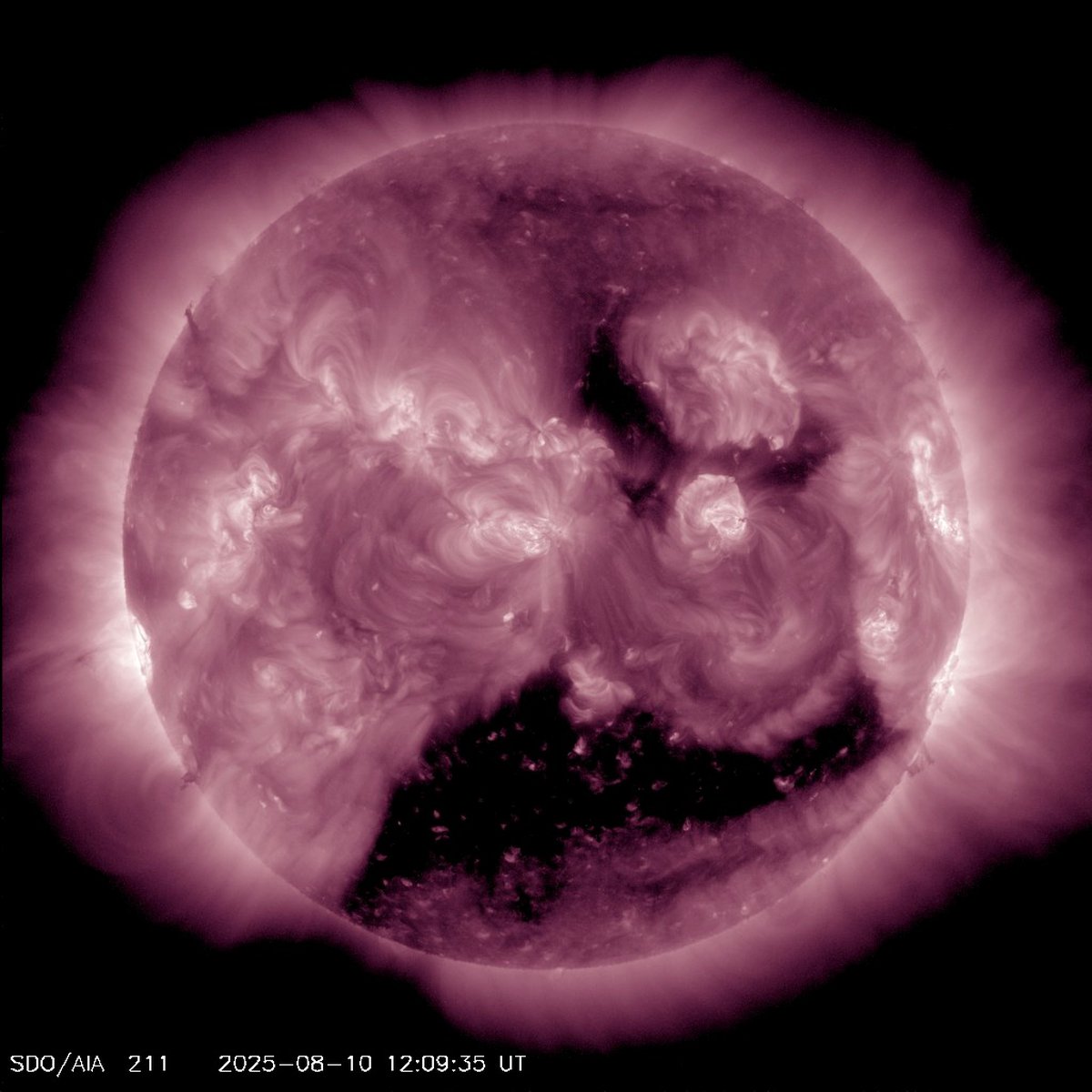 Как и прежде, на магнитосферу нашей планеты оказывает воздействие поток быстрого солнечного ветра из крупной корональной дыры в южном полушарии Солнца. Магнитная буря 8-9 августа была усилена прохождением мимо планеты коронального выброса массы, но он уже остался позади.