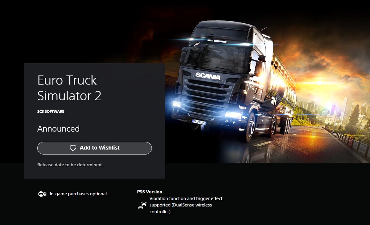 Студия SCS Software планирует выпустить симулятор дальнобойщика Euro Truck Simulator 2 на PlayStation 5. Страница игры появилась в PlayStation Store, официального анонса пока нет.