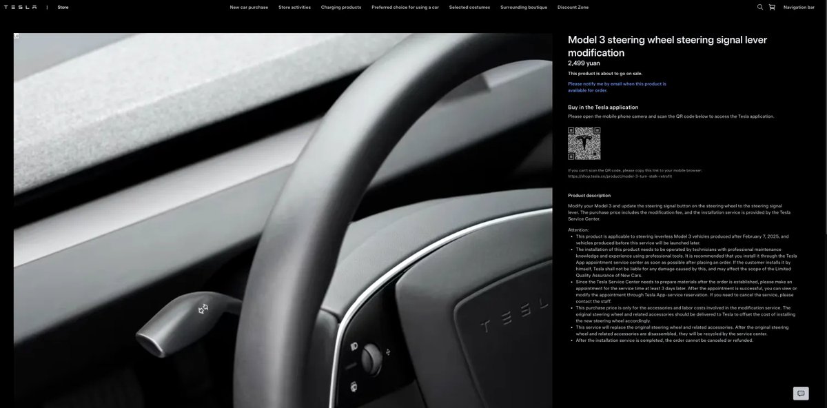 Компания Tesla начала предлагать владельцам обновлённого электромобиля Model 3 комплект для дооснащения подрулевым переключателем поворотников. Пока заказать такой комплект можно только в Китае.