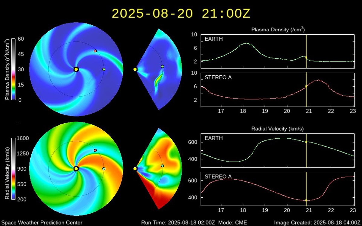 Вечером 19 августа поток солнечного ветра, вырвавшийся из обширной корональной дыры на Солнце, добрался до Земли. Его столкновение с магнитным полем планеты вызвало возмущения, которые в ряде регионов переросли в полноценную геомагнитную бурю класса G1.