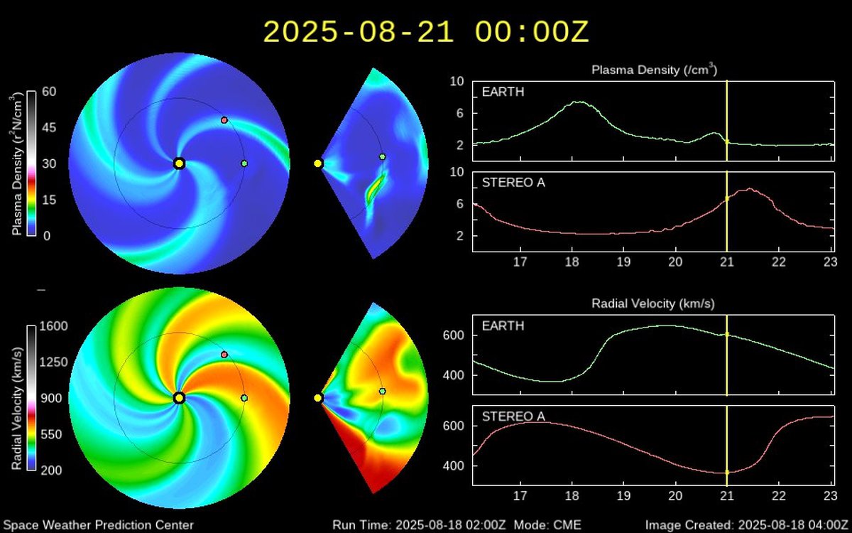 Маловероятно, что поток частиц, через который будет проходить Земля, окажется сильнее ожиданий. Вечером 19 августа скорость потока превышала 700 километров в секунду, но с тех пор он лишь замедляется.