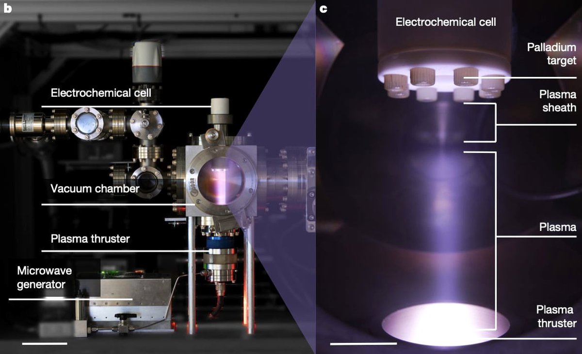 Одновременно в системе работает электрохимическая ячейка: она расщепляет молекулы тяжелой воды и производит новые ионы дейтерия. Эти ионы поступают к мишени, повышая плотность «топлива» и вероятность слияния.