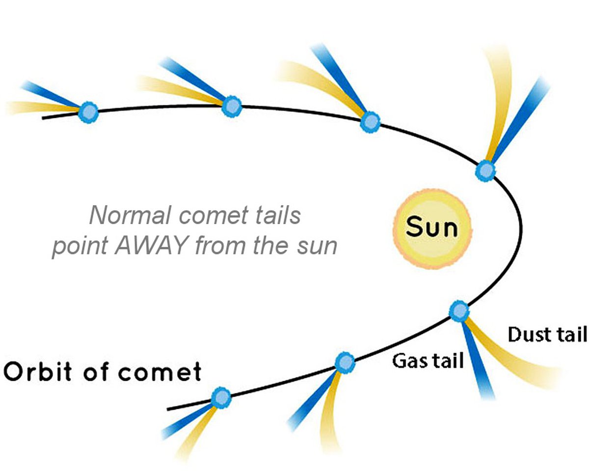 Проанализировав снимки телескопа, астрономы пришли к выводу, что 3I/ATLAS летит хвостом не от Солнца, а прямо к звезде. Примечательно, что обычно хвосты комет формируются как раз под действием солнечного излучения.