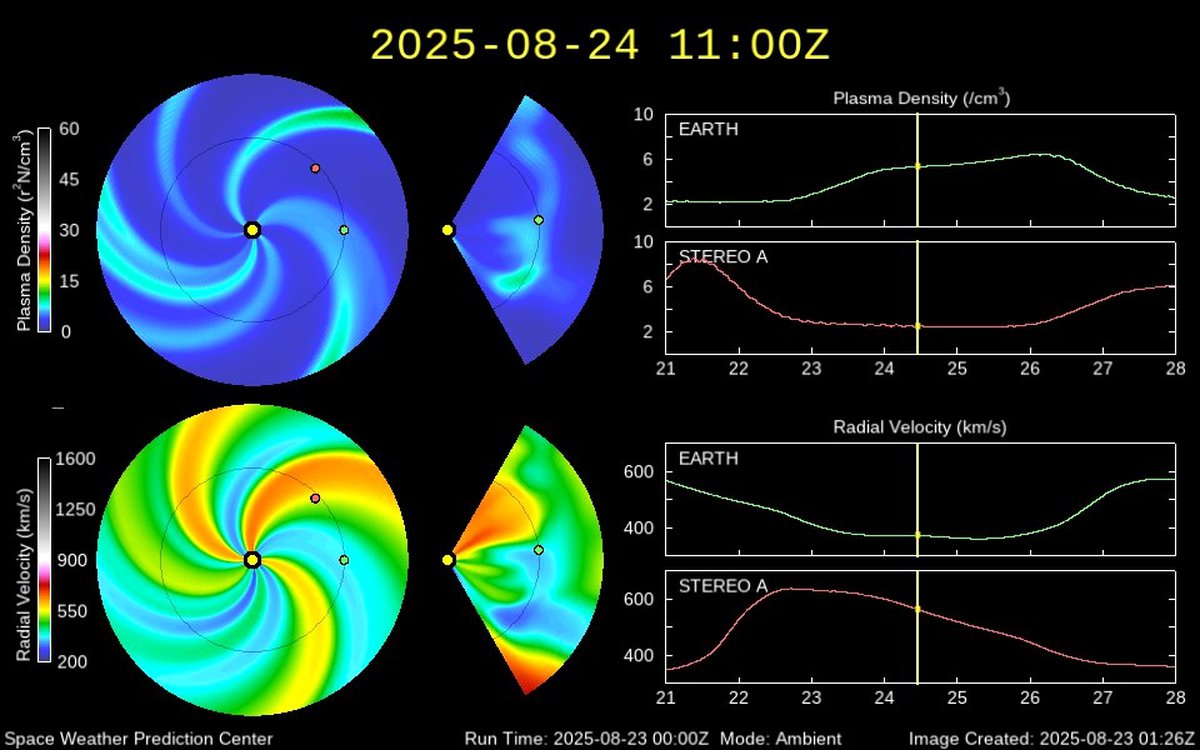Хотя геомагнитная буря 24 августа не ожидается, она может произойти в ближайшие дни. На это указывают несколько факторов: во-первых, к Земле снова идет поток солнечного ветра из новой корональной дыры.