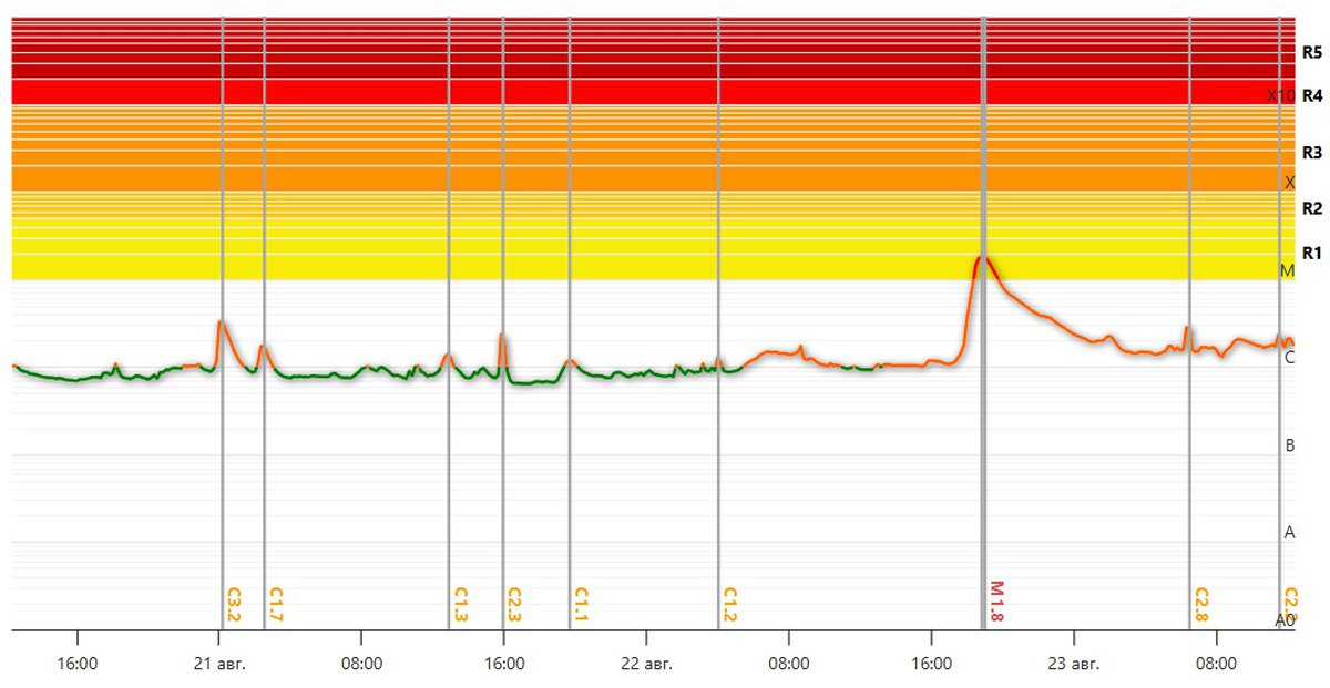 Прогноз магнитных бурь на 24 августа: вспышка на 5 часов