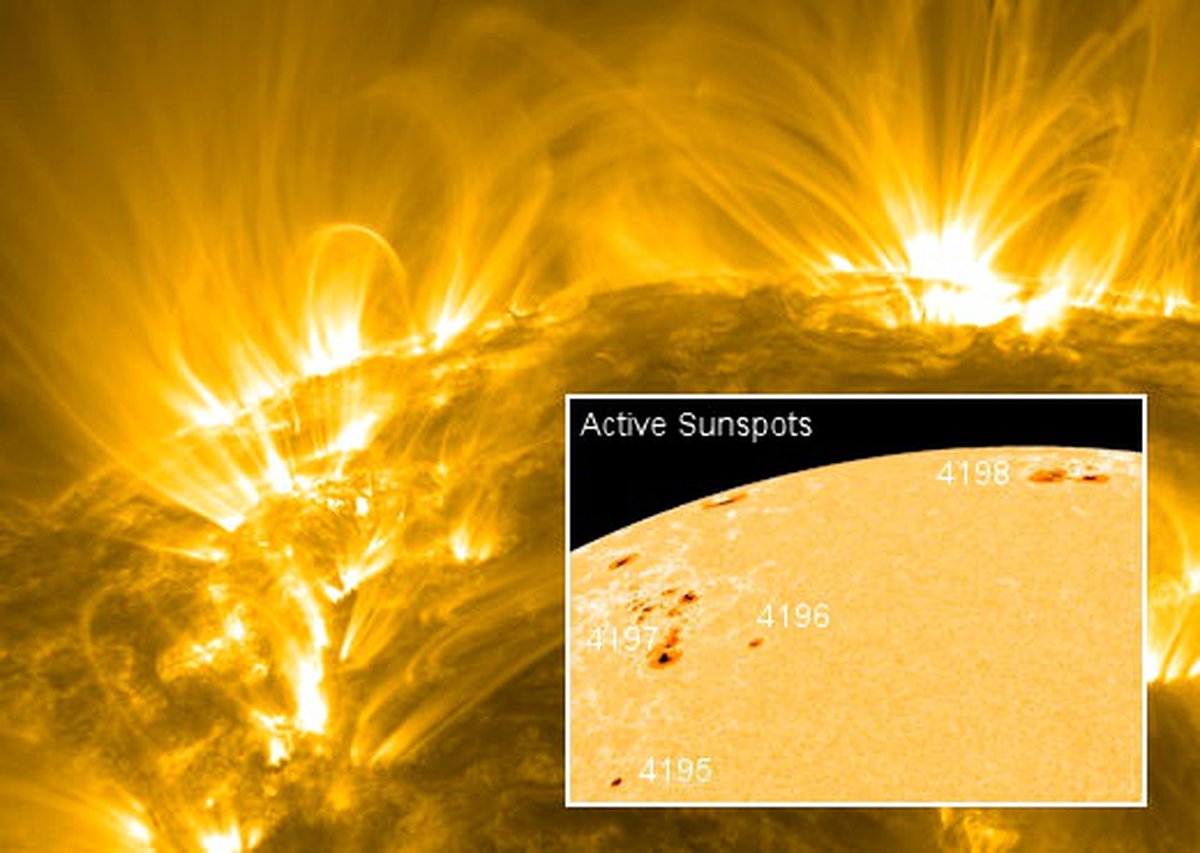 Неделю назад эти пятна находились на обратной стороне Солнца и стали источником нескольких мощных корональных выбросов массы. Если пятна продолжат демонстрировать такой же уровень активности, то на Земле могут произойти мощные магнитные бури.