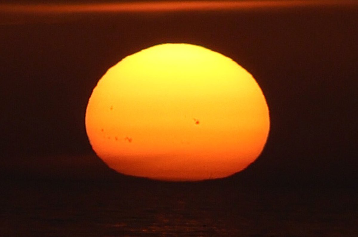 Группа пятен во главе с AR4197 настолько крупная, что может быть замечена с Земли даже без использования особенно мощной оптики. На фотографии ниже пятна видны в левой нижней части Солнца.