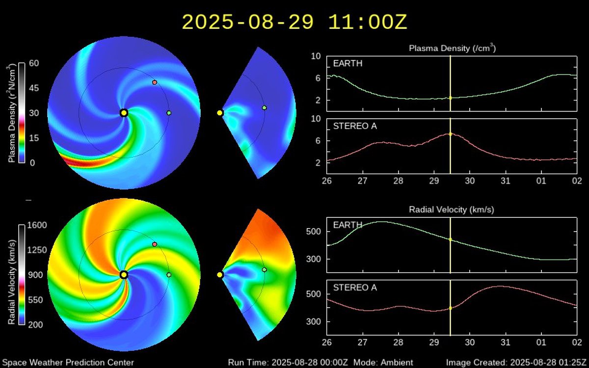 Поток солнечного ветра наконец утих, геомагнитная буря 29 августа не ожидается.