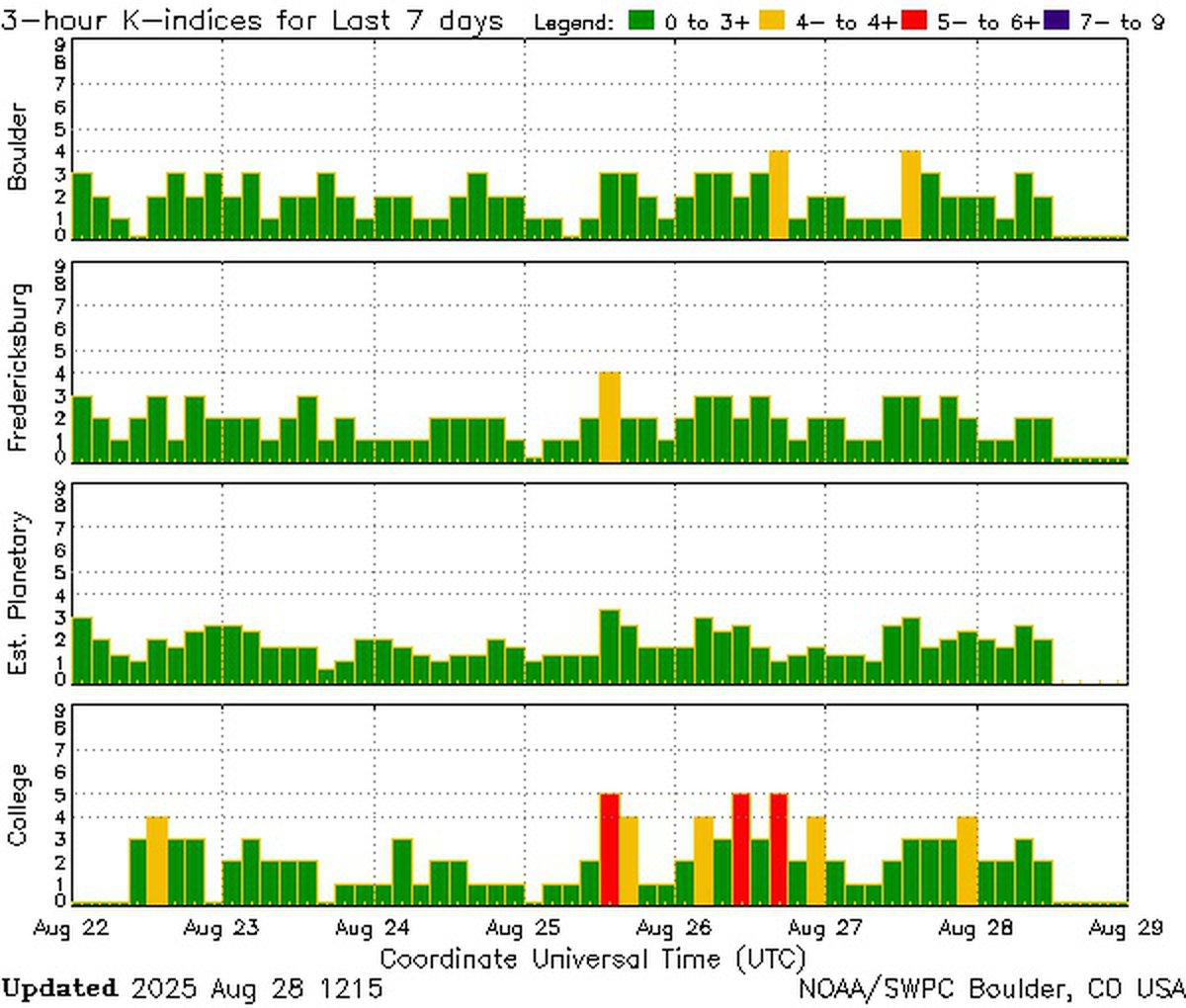 В пятницу, 29 августа, геомагнитная обстановка будет преимущественно спокойной, сообщают аналитики NOAA США и британского Met Office. Даже в худшем случае индекс геомагнитной активности Kp не превысит 2.67.