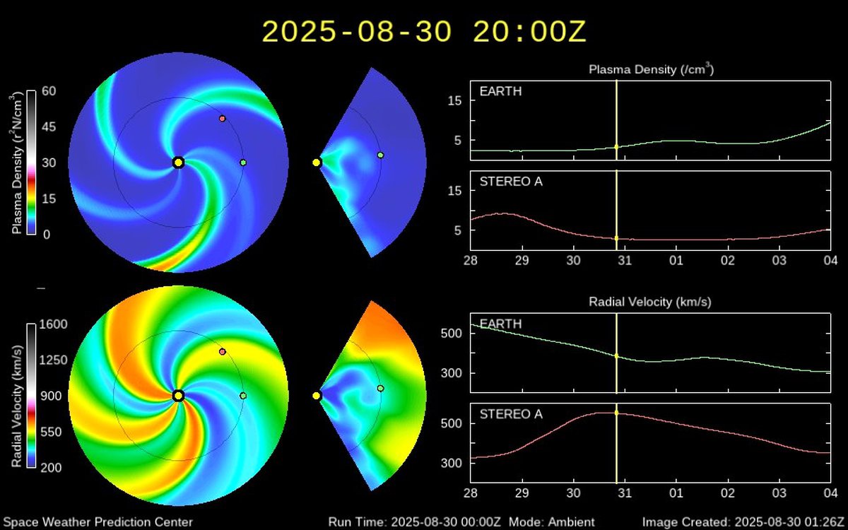 Согласно предварительному прогнозу, 1 сентября геомагнитная обстановка останется сопоставимой: ожидается действие все того же потока быстрого солнечного ветра. Вероятность роста активности сохраняется, но шансы на переход к полноценной магнитной буре класса G1 останутся минимальными.