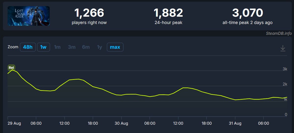 Мы не знаем, как дела у Lost Soul Aside на PlayStation 5, но в Steam интерес к проекту минимальный. В пике игра привлекла 3070 человек одновременно, на выходных этот результат явно не будет побит.