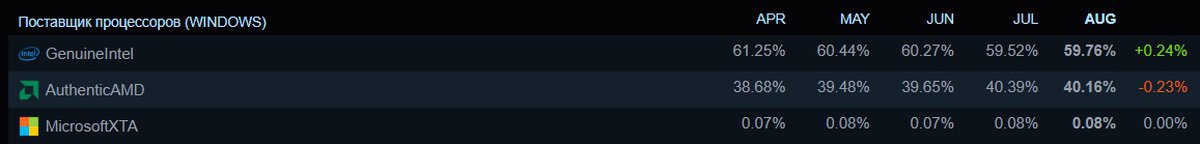 Кроме того, впервые за полгода AMD потеряла часть доли на рынке процессоров, уступив позиции Intel. Ранее доля компании поднялась выше 40% благодаря популярности Ryzen 7 9800X3D, но в августе позиции AMD снизились на 0.23%.