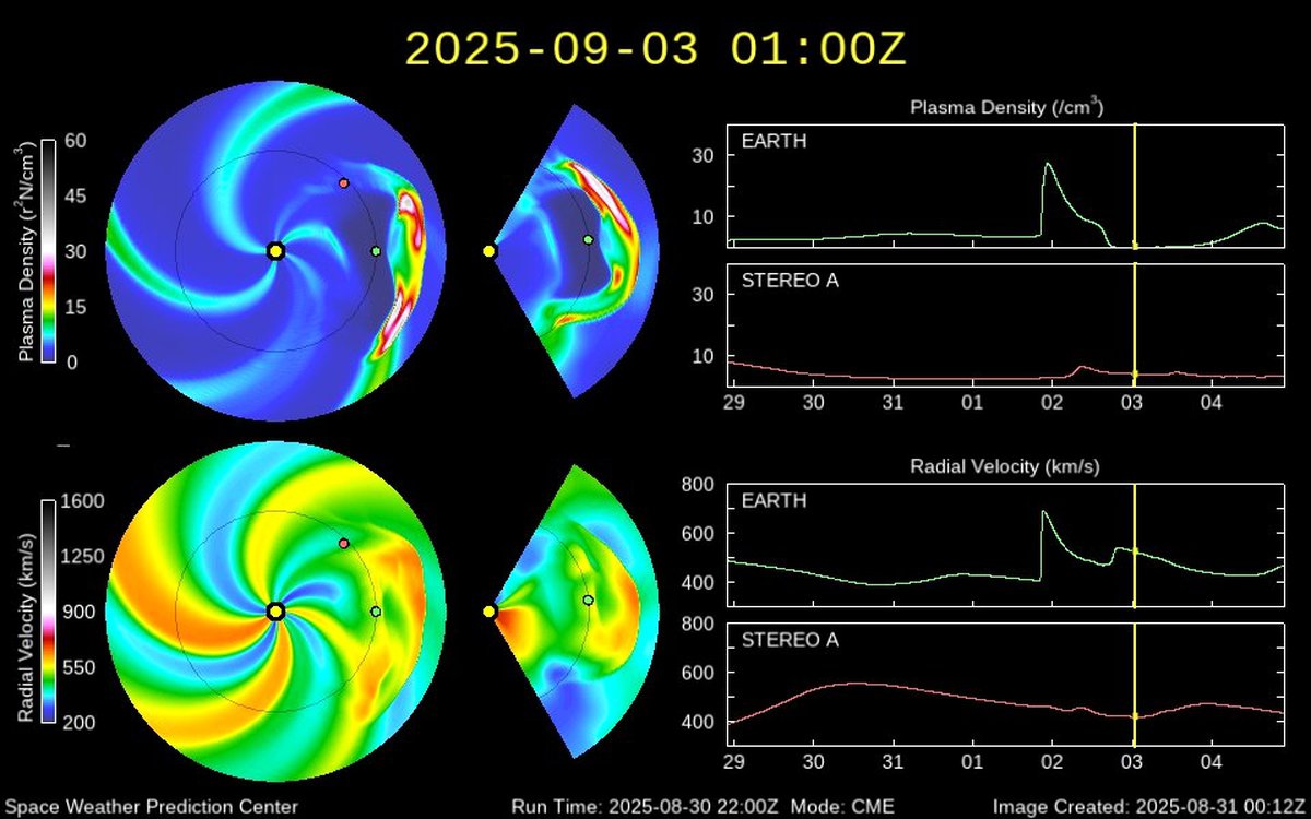 Если мощная вспышка с корональным выбросом массы случится прямо сейчас, то поток плазмы доберется до Земли не раньше 5 сентября. Вероятно, 4 сентября магнитосфера продолжит стабилизацию.