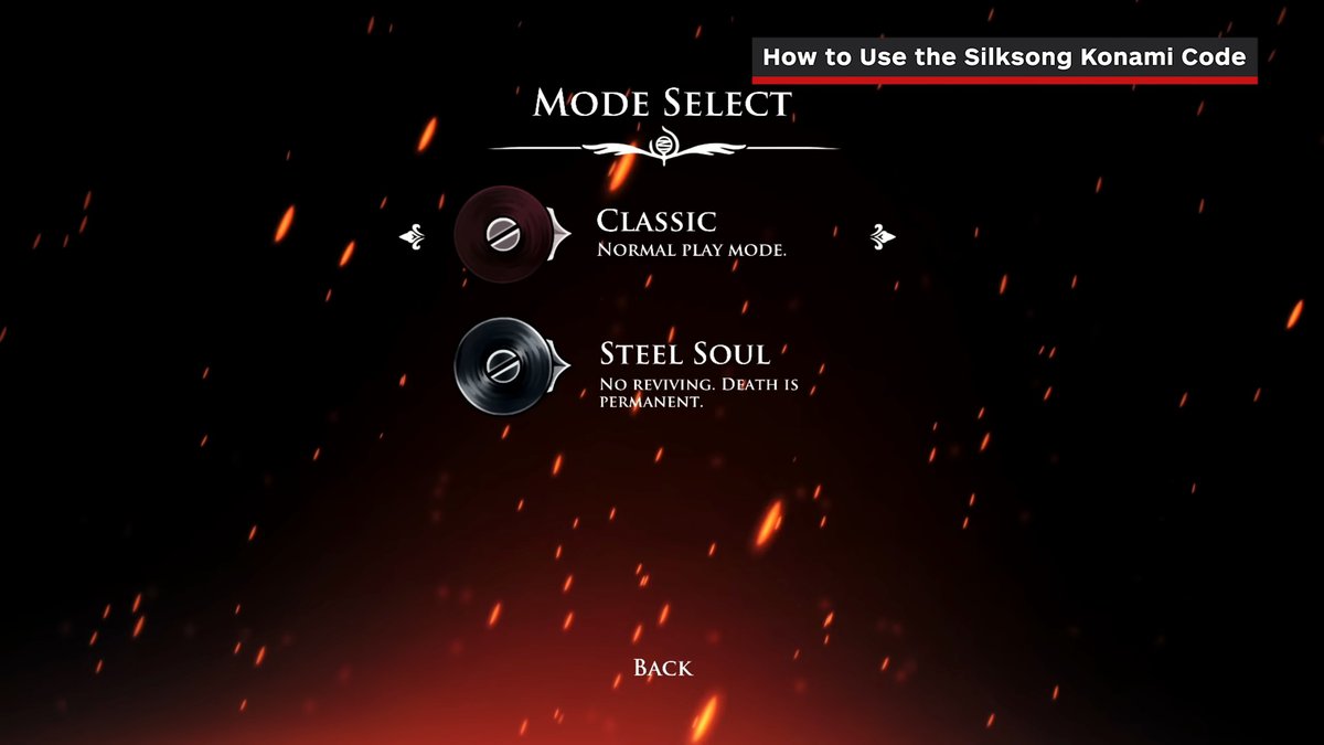 Если все сделать правильно, то можно будет выбрать альтернативный режим Steel Soul. В этом режиме Хорнет не будет воскрешать, каждая смерть означает полный перезапуск прохождения игры.