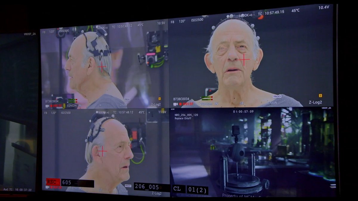 Затем Ллойда усаживали в студии, показывали ему картинку, отснятую с камеры профессорской тележки — и он отыгрывал сцену еще раз. Мимика актера записывалась, эти данные использовались для создания анимаций головы.
