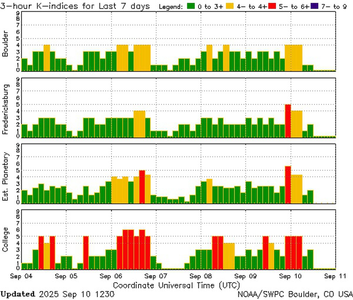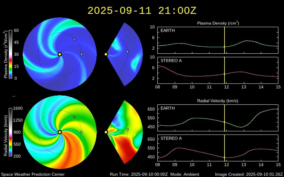Аналитики считают, что эффект Рассела-Макферрона, отвечавший за неожиданную бурю 10 сентября, больше себя не проявит. Рано утром индекс геомагнитной активности Kp может подняться до 3 (буря начинается при 5), но затем он начнет снижение.