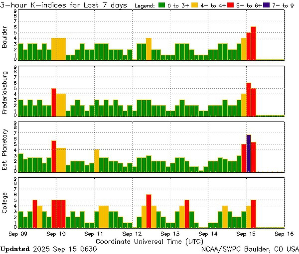 Рано утром 15 сентября на Земле началась мощная магнитная буря. Она очень быстро достигла класса G2, в некоторых областях, следует из данных NOAA США, сила бури достигла класса G3.