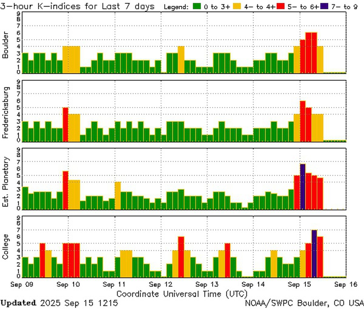 После бурной ночи с 14 на 15 сентября, когда Земля попала под удар мощного потока солнечного ветра и произошла магнитная буря класса G3, геомагнитная обстановка постепенно возвращается к норме.