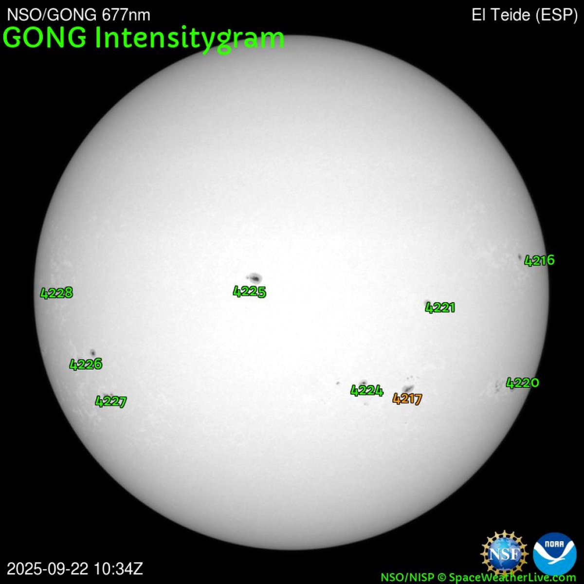 Само Солнце продолжает показывать низкий уровень активности. На обращенной к Земле части звезды есть девять активных пятен, одно из них обладает нестабильным магнитным полем, но пока не выдавало мощных вспышек.