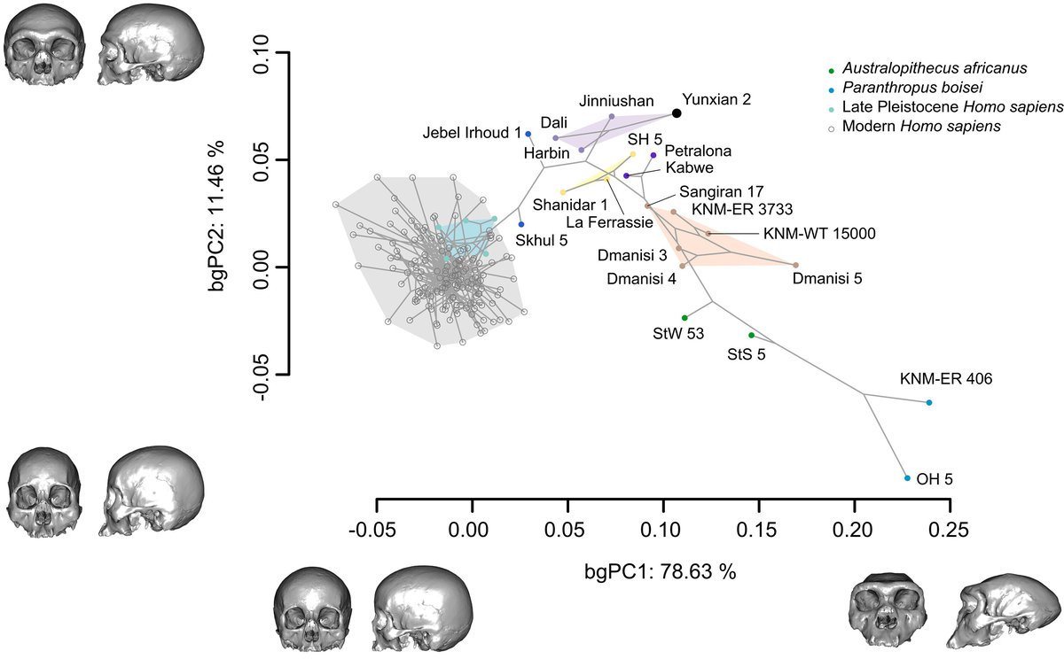 Исследование показало, что один из черепов сочетает в себе как древние, так и более поздние черты гоминид. Среди древних признаков ученые называют массивные надбровные дуги и вытянутый мозговой отдел, характерные для Homo erectus.