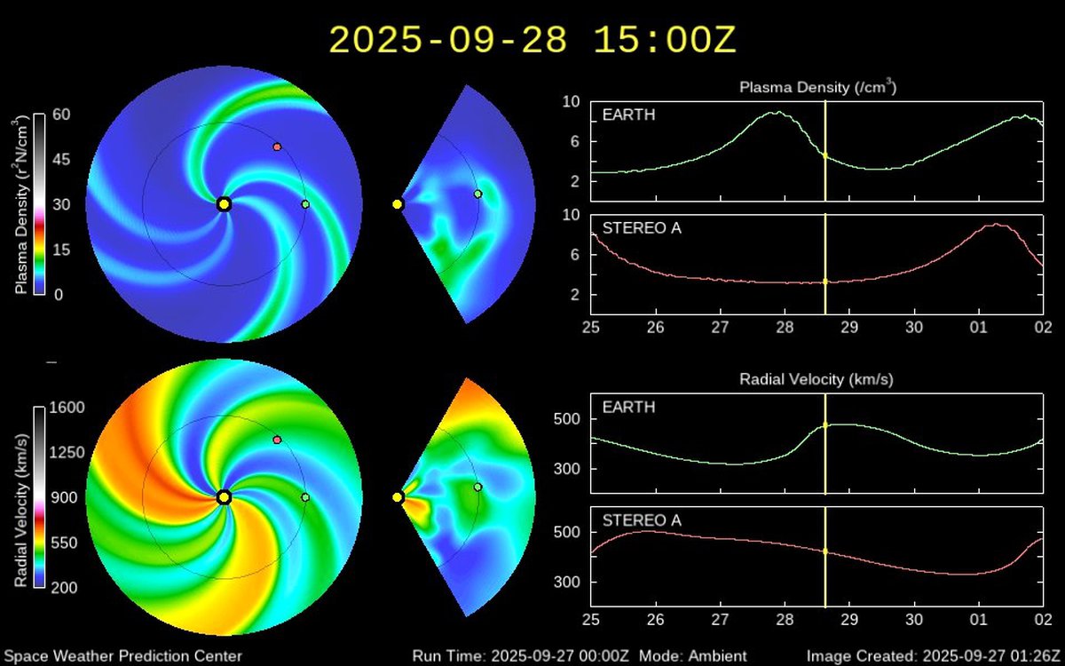 Есть некая вероятность, что вечером 28 сентября поток солнечного ветра окажется сильнее прогнозов аналитиков и мы все-таки увидим магнитную бурю. В то же время на сильный шторм пока можно не рассчитывать: даже если Солнце прямо сейчас выдаст корональный выброс массы, он доберется до Земли только через пару-тройку дней.