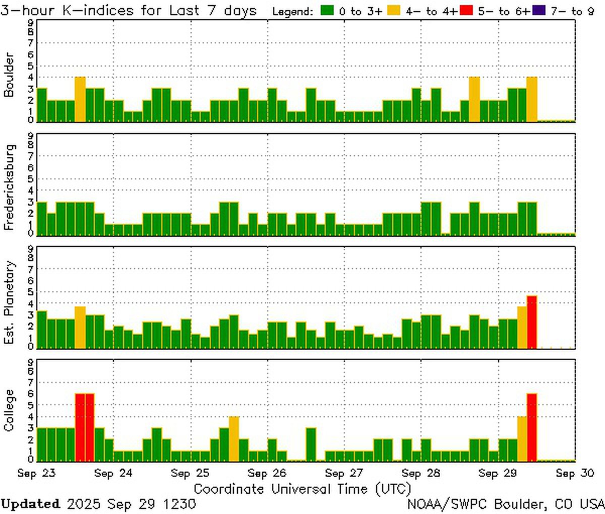 Если верить актуальным прогнозам, геомагнитная обстановка 30 сентября должна быть спокойнее, чем 29 сентября, и на этот раз дело до магнитной бури не дойдет. Если аналитики ошиблись, то мы можем вновь увидеть геомагнитную бурю класса G1.