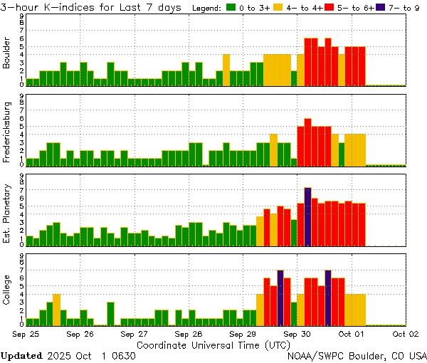 Аналитики ожидают, что 1 октября магнитные бури будут продолжаться по меньшей мере до 15:00 по Москве. Вечером магнитосфера может быть возмущена, но уровень возмущения будет ниже уровня магнитной бури.