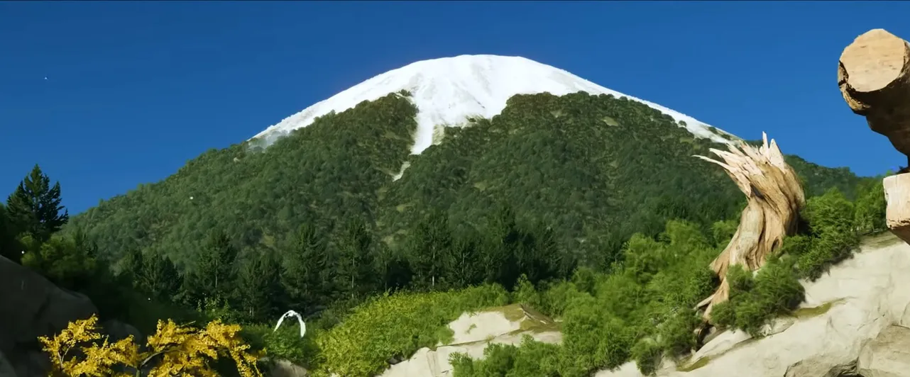 Оказалось, можно — но есть нюансы. Даже если стартовать от подножия горы, то путешествие к вершине вулкана Йотей займет порядка десяти минут реального времени.