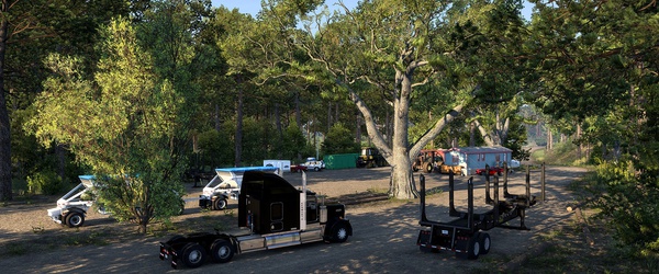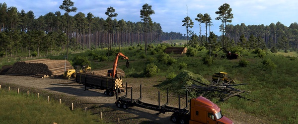 Именно окрестности лесопилок смотрятся особенно впечатляюще: обычно виртуальные дальнобойщики путешествуют по менее заросшей местности. Фермы, напоминающие старые плантации, тоже смотрятся любопытно.