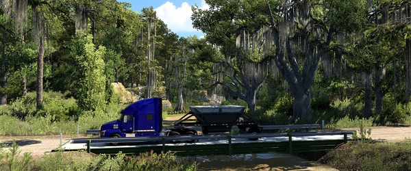 Разработчики симулятора дальнобойщика American Truck Simulator показали новые скриншоты Луизианы из соответствующего дополнения. Штат будет очень зеленым, на контрасте с большей частью остальных локаций он выглядит довольно необычно.