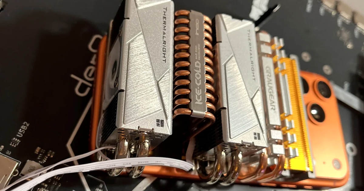 Инженеры Apple снабдили iPhone 17 Pro и Pro Max новой системой охлаждения с испарительной камерой, но реддитор T-K-Tronix решил, что этого недостаточно. Энтузиаст взял дело в свои руки и дополнительно охладил смартфон с помощью внешних радиаторов.