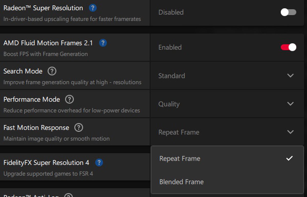 Энтузиасты обнаружили, что в тестовой версии драйвера Windows Preview Edition 25.120.01.14 появилась дополнительная опция, Fast Motion Response. Она позволяет повысить качество картинки в динамичных сценах.