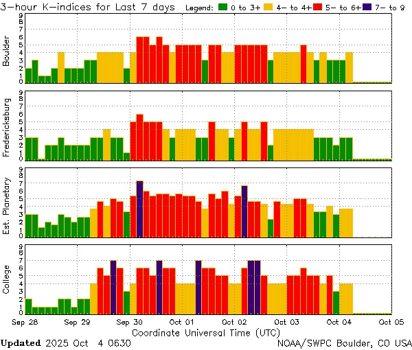 Магнитная буря, начавшаяся в конце сентября, все-таки закончилась. Вечером 3 октября давление на магнитосферу Земли начало спадать, по состоянию на утро 4 октября магнитосфера все еще возмущена, но уровень возмущения ниже уровня магнитной бури.
