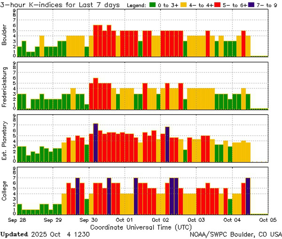 Кроме того, есть вероятность, что поток частиц снова окажется сильнее ожиданий аналитиков. Магнитная буря 29 сентября — 3 октября вроде бы закончилась, но в некоторых регионах все еще наблюдаются заметные возмущения.