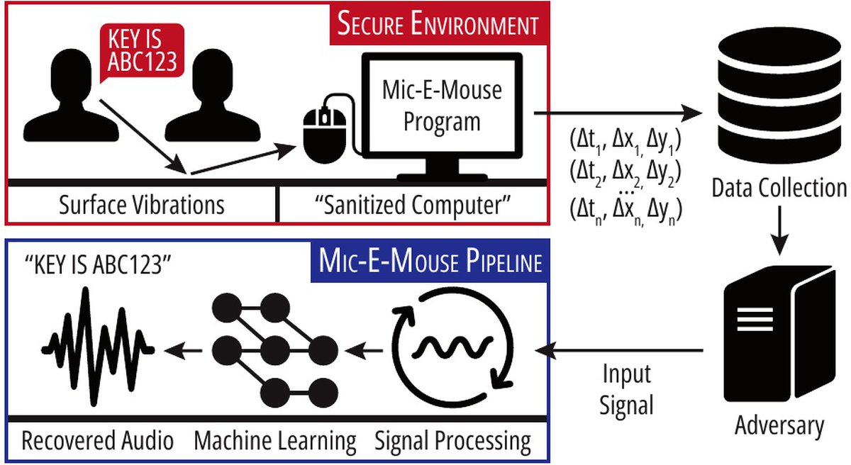 Если полученные данные обработать при помощи цифровых фильтров и нейросетевых моделей, то можно получить аудиозапись того, что происходит вокруг мышки.