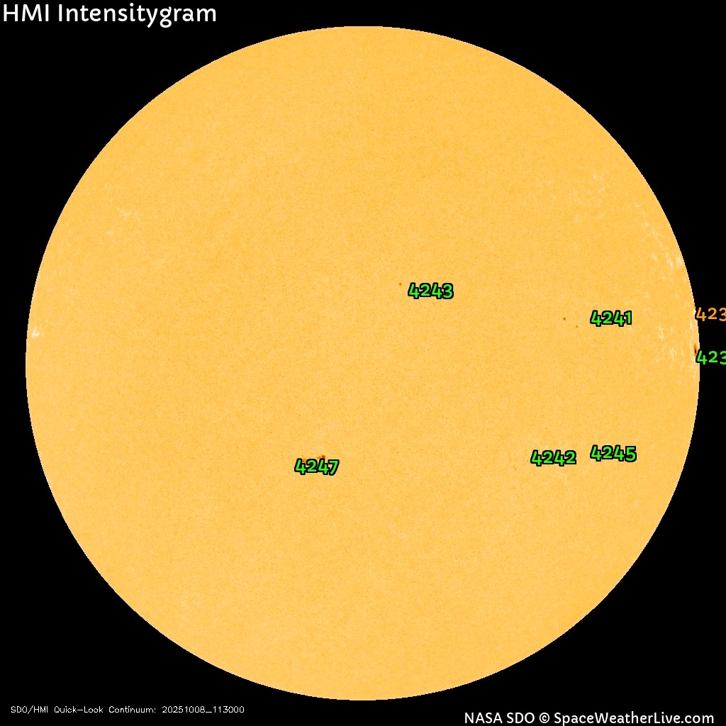 Зато насчет солнечных вспышек пока можно не переживать. С видимого диска Солнца ушли все нестабильные пятна, вероятность вспышек предмаксимального класса M понижена до 35%. Правда, у вспышек максимального класса X вероятность все еще равна 10%.