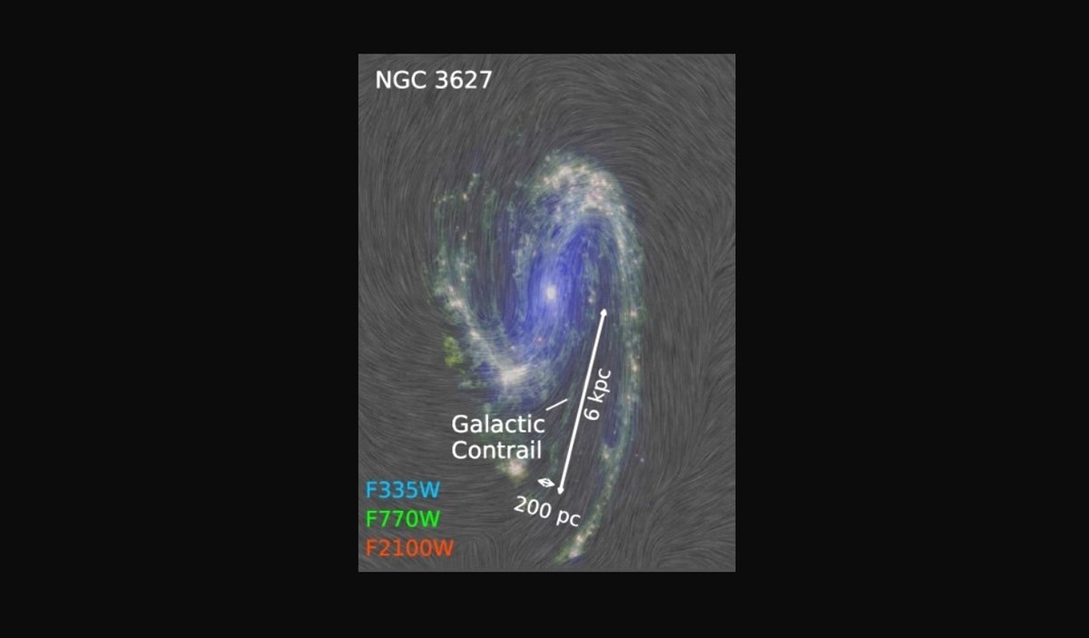 С помощью телескопа «Джеймс Уэбб» и радиоинтерферометра ALMA исследователям удалось обнаружить в спиральной галактике NGC 3627 своеобразный шрам: гигантский шлейф из газа и пыли.