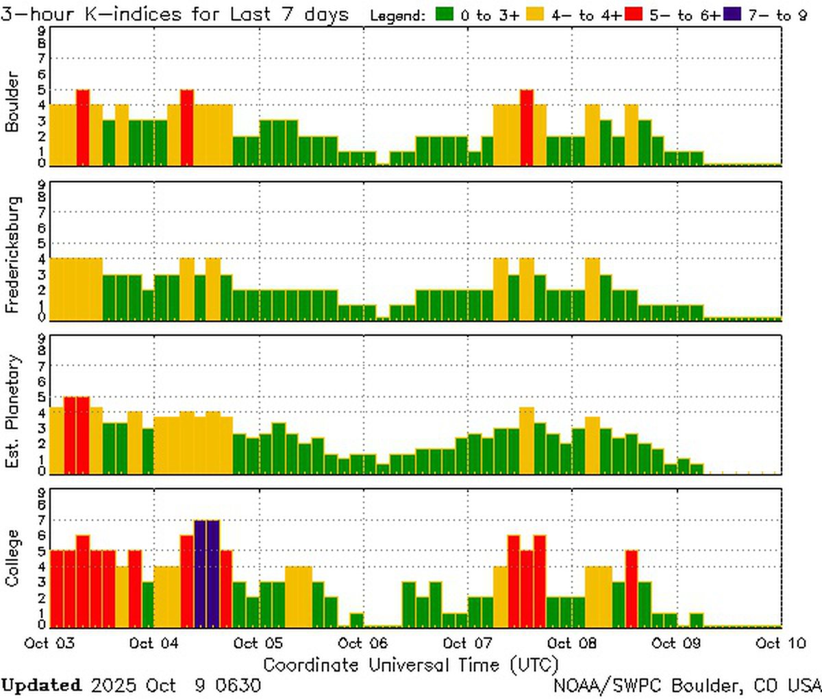 9 октября ожидалась магнитная буря, но детекторы NOAA ее так и не зафиксировали. Согласно актуальным данным, магнитосфера Земли слегка возмущена, но о магнитной буре не идет и речи.