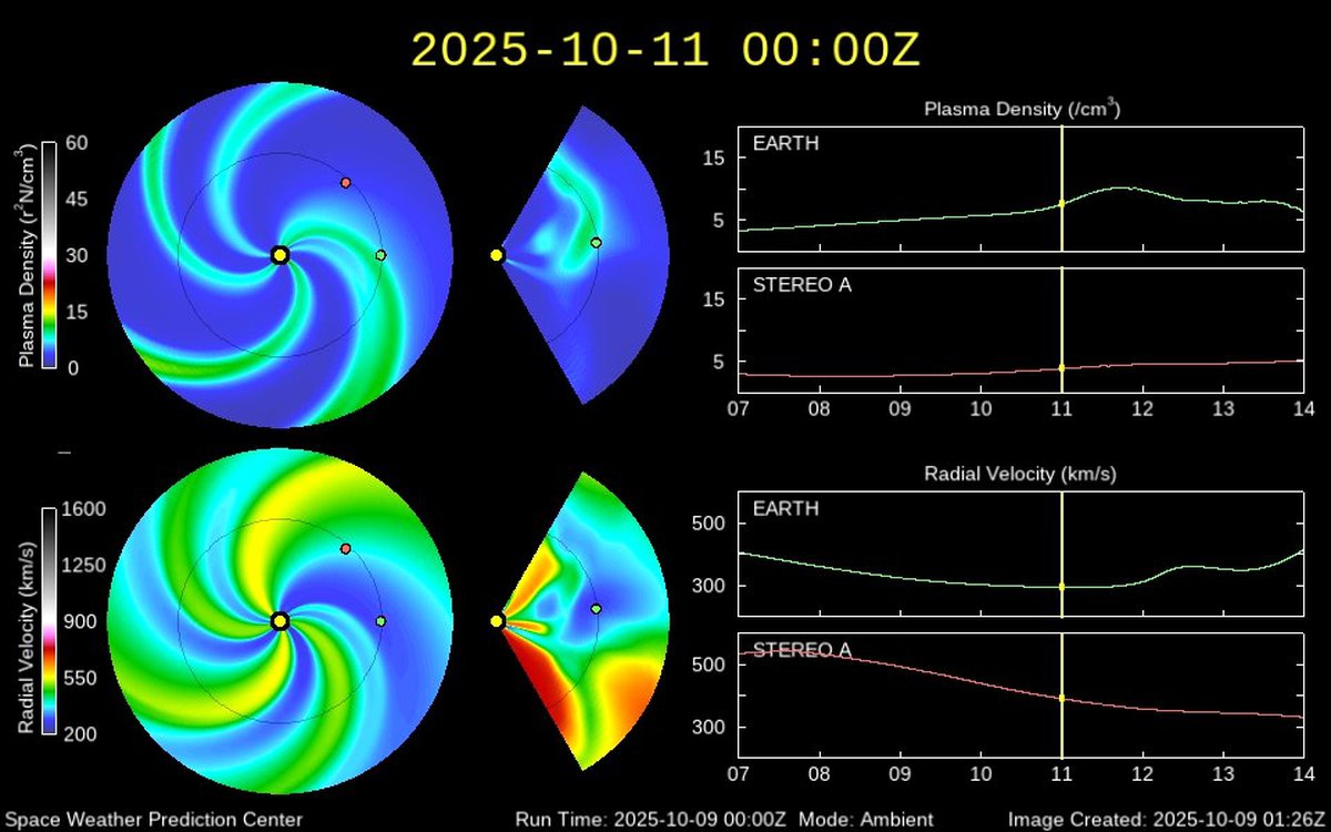 Согласно модели распространения солнечного ветра WSA-Enlil, прохождение Земли через поток частиц растянется на несколько дней — возможно, до утра 14 октября. Все это время на Земле возможны магнитные бури уровня класса G1.