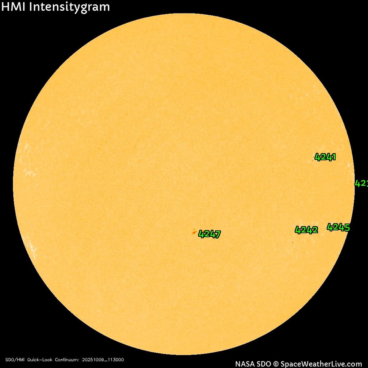 Солнце сейчас тоже ведет себя достаточно прилично. На обращенной к Земле части звезды есть порядка четырех пятен, но они обладают простыми конфигурациями и не угрожают мощными вспышками.